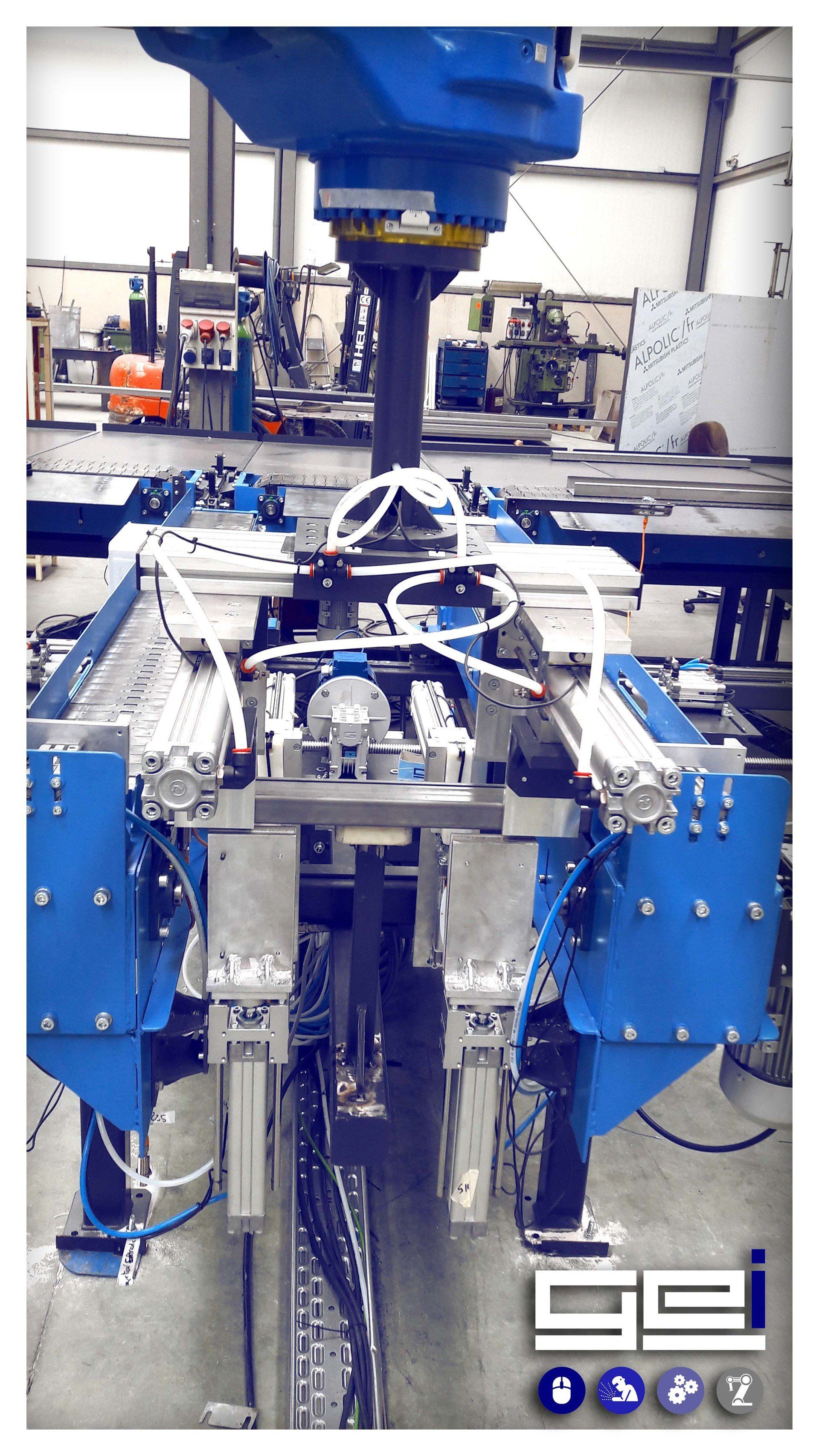 Design, Herstellung und vollständige Integration einer Roboterzelle für die Handhabung von Profilen.