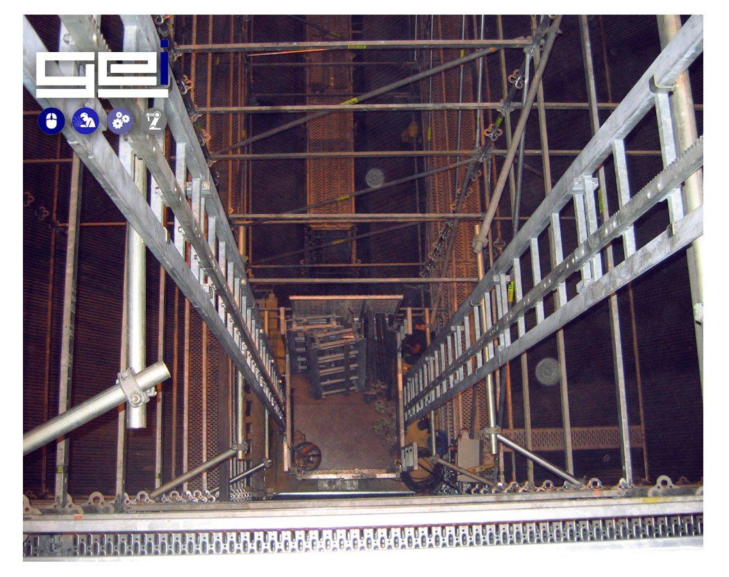 - El equipo permite su instalación en el hueco de ascensor, aprovechando el espacio natural de obra para reparto de material, en altura.